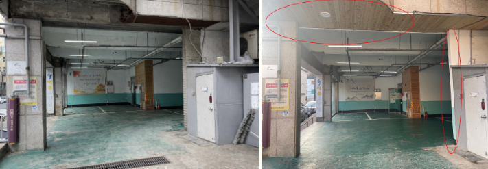 (예봄요양원 1층 주차장 환경개선 공사 시작전과 후 모습입니다.)